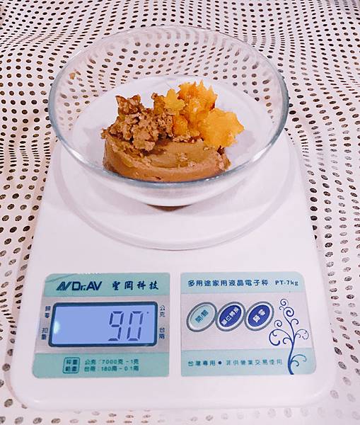 我一次會做罐頭半罐45g+地瓜45g=90g