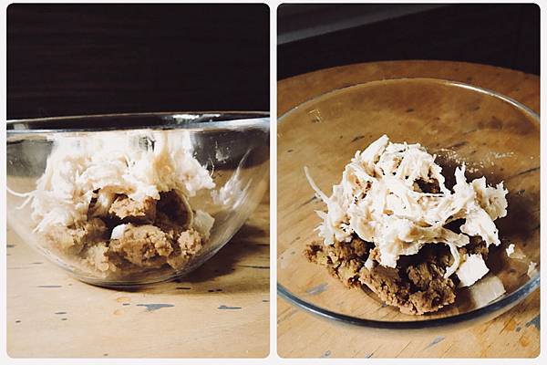❶主食罐+地瓜 拌勻(比例1:1拌勻)